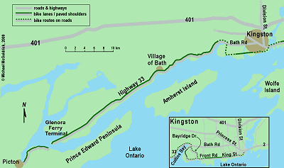 This article presents information from the perspective of someone cycling west from Kingston. However, it is fairly easy to work backwards from the information provided when planning your ride on the opposite direction. Unfortunately, finding the route to the downtown area once you get into Kingston may not be all that obvious.